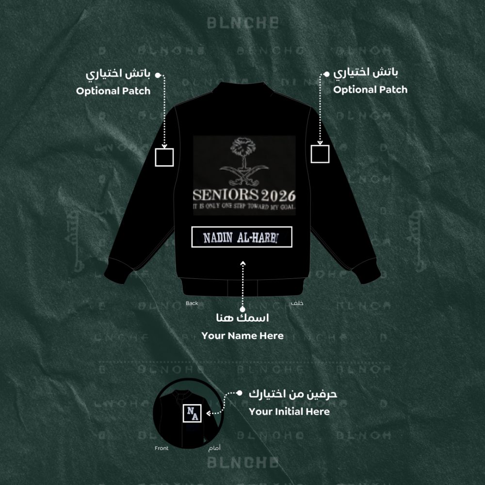 ✓إمكانية اضافة تطريز باتشين كحد اقصى. مقاس كل باتش ٥ x ٥ سم. (برسوم إضافية)